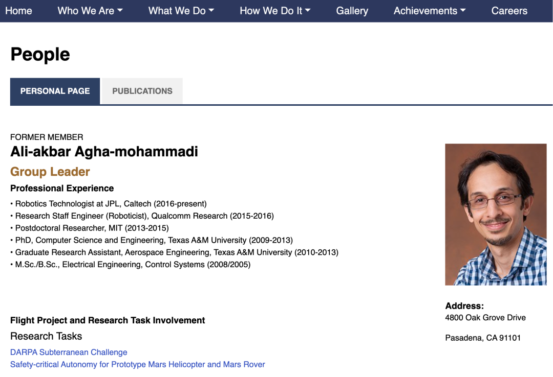 The company's founder and CEO, Ali Agha, has a well-documented career spanning seven years at NASA's Jet Propulsion Laboratory (JPL). He participated in NASA's autonomous Mars cave exploration and prototype Mars helicopter-rover collaborative autonomous project, as well as research related to DARPA RACER (an off-road autonomous vehicle).A closer look at these projects reveals a common thread: the environment is unpredictable and the cost of making mistakes is extremely high, leaving virtually no possibility of human intervention.