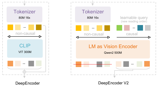 Building upon DeepSeek-OCR, DeepSeek-AI researchers have proposed DeepSeek-OCR 2. If DeepSeek-OCR was a preliminary exploration of the feasibility of compressing long contexts through two-dimensional optical mapping, then DeepSeek-OCR 2 aims to explore the feasibility of a novel encoder—DeepEncoderV2—dynamically rearranging visual tokens driven by image semantics. DeepEncoder V2 is designed to endow the encoder with causal reasoning capabilities, enabling it to intelligently rearrange visual tokens before LLM-based content understanding, replacing rigid raster scanning processing. This achieves more human-like, semantically coherent image understanding, enhancing OCR and document analysis capabilities.