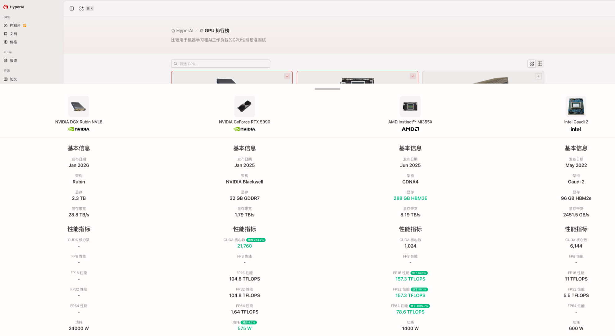 In view of this,HyperAI has launched a "GPU Ranking List" to build a GPU selection and decision-making reference platform for AI/large model/HPC scenarios.It supports cross-vendor and cross-architecture comparisons, using unified comparison rules to help users make correct and rational technical decisions in the complex GPU/AI accelerator market. HyperAI will keep track of the latest product updates to provide developers with practical tools centered on real-world AI workloads.