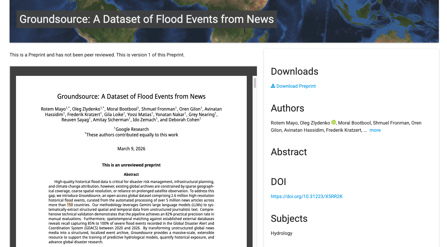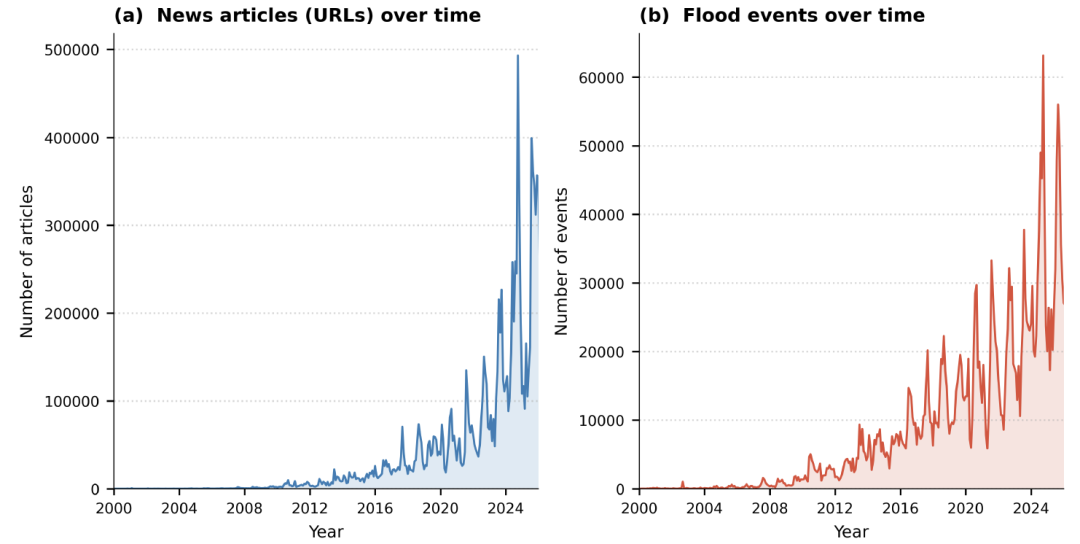 Recently, Google Research open-sourced the Groundsource flood dataset, which extracts validated ground information from unstructured data, enabling the mapping of historical disaster footprints with unprecedented accuracy.Researchers automated the processing of over 5 million news reports from more than 150 countries, ultimately compiling over 2.6 million records of historical flood events.It provides an unprecedented scale and coverage of data for global flood research.
