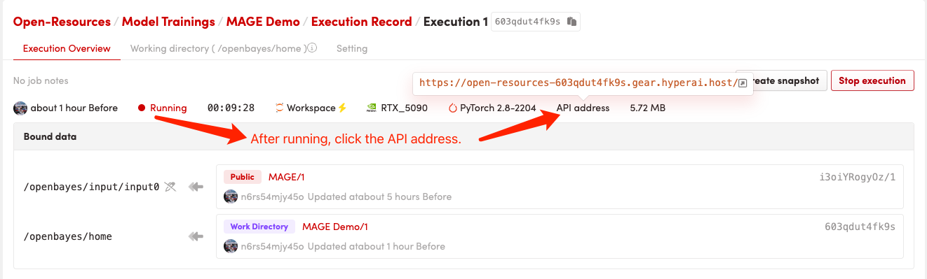 1. After starting the container, click the API address to enter the Web interface