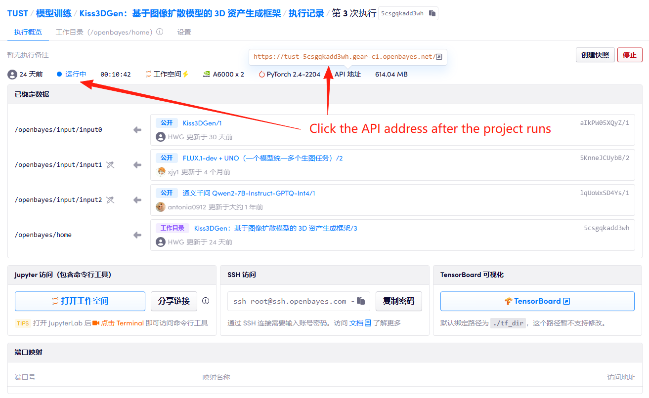 1. After starting the container, click the API address to enter the Web interface