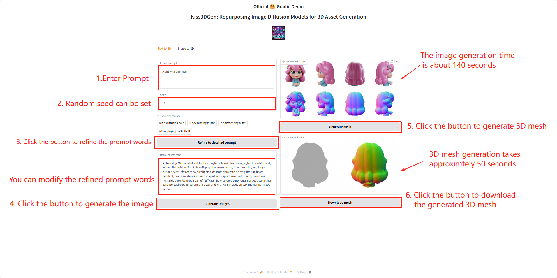 Kiss3DGen is an open-source 3D generation and reconstruction framework developed by the EnVision-Research team and published in March 2025. It aims to efficiently transfer pre-trained 2D diffusion models to 3D content generation tasks. It supports high-quality multi-view rendering, 3D text generation, image-to-3D conversion, and 3D mesh reconstruction, integrating advanced modules such as Flux, Multiview, Caption, Reconstruction, and LLM. It also introduces 3D Bundle Image technology combined with normal maps and texture information to achieve accurate geometric reconstruction. Furthermore, it can be used with tools like ControlNet for 3D model enhancement and editing. This open-source framework is easy to deploy and has both academic research and practical application value. Related research papers are available. Kiss3DGen: Repurposing Image Diffusion Models for 3D Asset GenerationIt has been included in CVPR 2025.