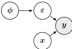 The graphical model in the figure above illustrates the generative process underlying the blind denoising problem. It shows that the observed data y is generated from the true signal x and the noise parameters ϕ, which in turn generate the noise ε. The goal is to infer the latent variables x and ϕ from the observation y, which is a classic Bayesian inference problem. The GDiff algorithm directly targets this inference by constructing a Markov chain that explores the joint posterior distribution p(x,ϕ∣y).