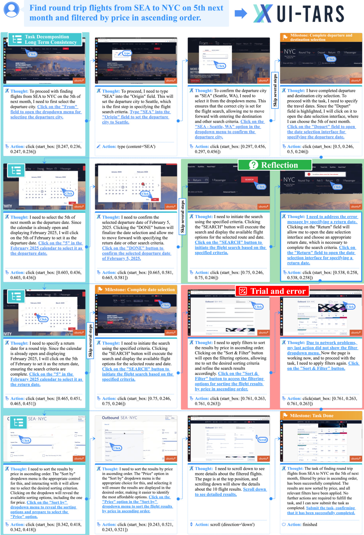 - This paper introduces UI-TARS, a native GUI agent model that functions as an end-to-end system by perceiving screenshots directly to perform human-like keyboard and mouse interactions.