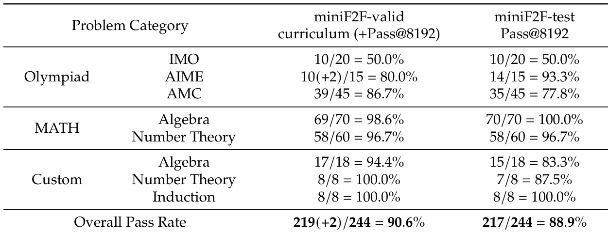 - The model is trained using a mixture of data sources, including high-school level problems and college-level formalizations, enabling strong generalization to advanced mathematical domains.