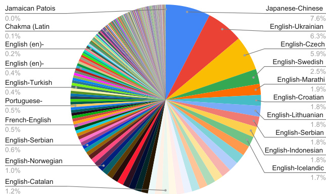 - Language distribution across SFT and RL is detailed in Figure 1, with full language pairings provided in Appendix C across three tables: bidirectional English pairs (Table 5), English-to-other language pairs (Table 6), and non-English language pairs (Table 7).