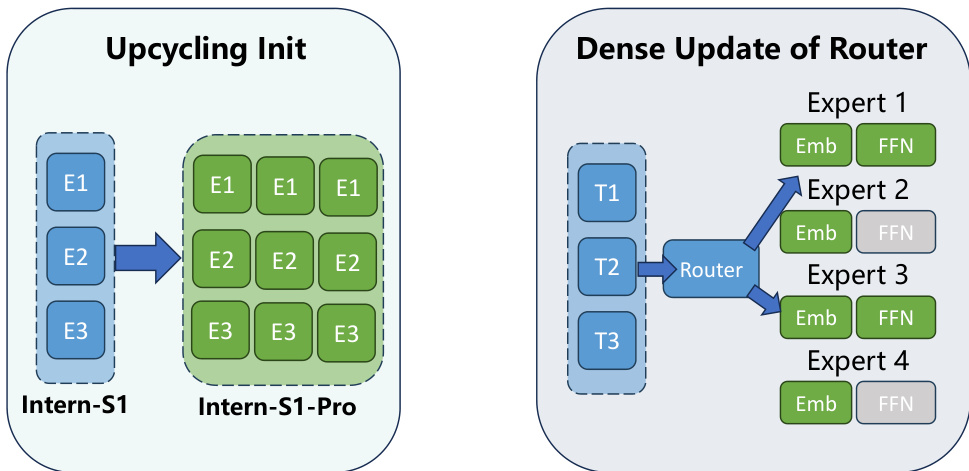 The Intern-S1-Pro Team from Shanghai AI Laboratory introduces Intern-S1-Pro, a trillion-parameter scientific multimodal foundation model that employs Grouped Routing and Straight-Through Estimators to stabilize massive Mixture-of-Experts training. This approach enables the model to master over 100 specialized scientific tasks while outperforming proprietary systems in deep domain reasoning and general capabilities.