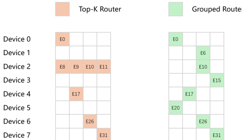 - A novel group routing mechanism and a gradient estimation scheme are proposed to address training instability and router optimization challenges in massive Mixture-of-Experts architectures, ensuring efficient load balancing and accelerated expert updates.