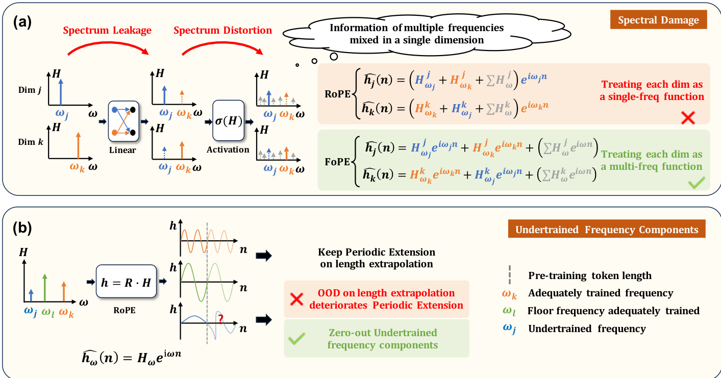 For positional encoding, the model introduces Fourier Position Encoding (FoPE) to better handle the continuous, wave-like nature of physical signals. Unlike Rotary Position Embedding (RoPE), which treats each dimension as a single-frequency function and can suffer from spectral damage, FoPE models each dimension as a multi-frequency function. This approach separates information more effectively and mitigates issues related to undertrained frequency components during length extrapolation.