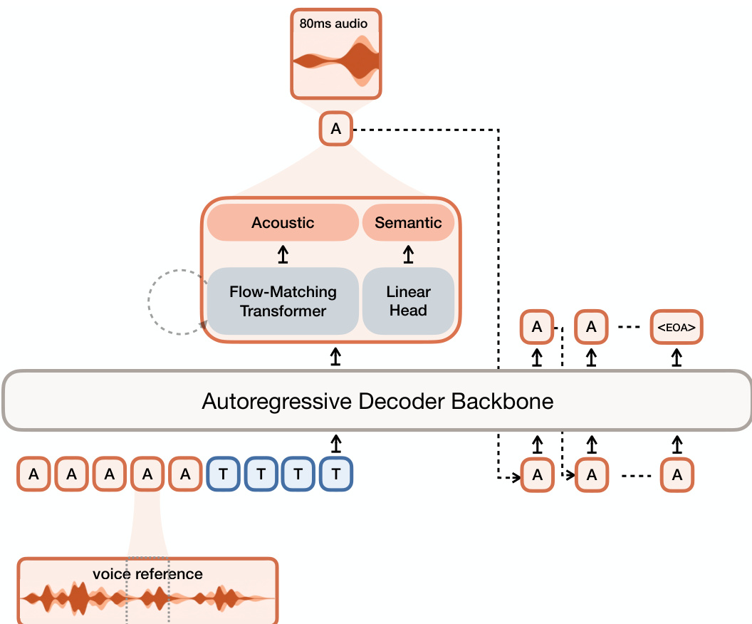 - The paper introduces Voxtral TTS, a multilingual zero-shot text-to-speech model that utilizes a hybrid architecture combining auto-regressive generation for semantic tokens with flow-matching for acoustic tokens to balance long-range consistency and rich acoustic detail.