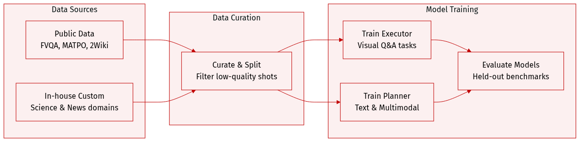 - Training: The authors adopt FVQA-train, which contains 4,856 image-question-answer examples from the MMSearch-R1 setting, to train both the Executor and the Planner.