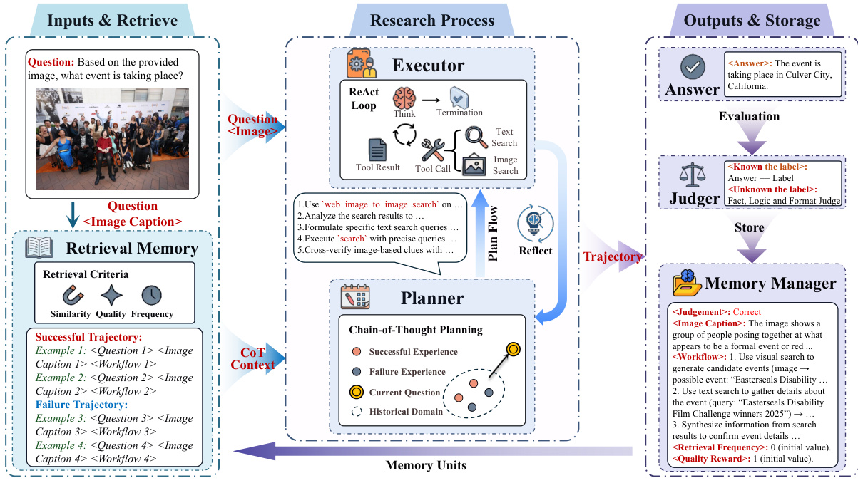 - Extensive experiments across eleven benchmarks demonstrate the superiority of MIA, showing significant performance enhancements for current SOTA LLMs in deep research tasks. The method boosts GPT-5.4 performance by up to 9% on LiveVQA and enables a lightweight Executor to outperform larger models by an 18% margin while achieving comparable performance in unsupervised settings.