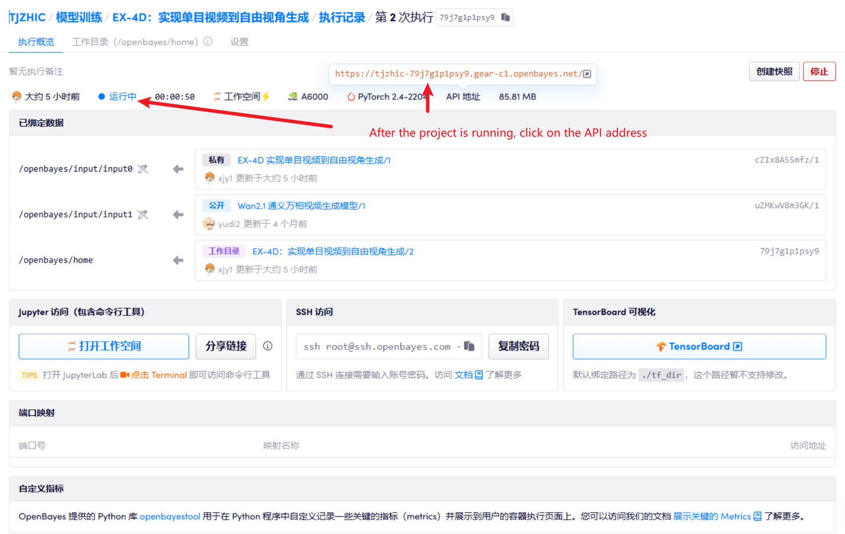 1. After starting the container, click the API address to enter the Web interface