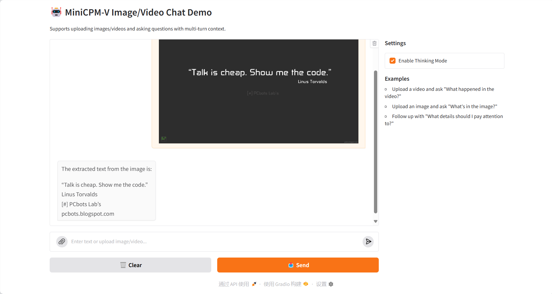 MiniCPM-V 4.5 is an extremely efficient large-scale end-side model open-sourced by the Natural Language Processing Laboratory of Tsinghua University and Mianbi Intelligence in August 2025. MiniCPM-V 4.5 has 8B parameters. The model has excellent performance in many fields such as pictures, videos, OCR, etc., especially in the understanding of high-refresh videos. It can process high-refresh-rate videos and accurately identify content. The model supports hybrid inference mode to balance performance and response speed. MiniCPM-V 4.5 is end-side deployment-friendly, with low video memory usage and fast inference speed. It is suitable for application in car computers, robots and other devices, setting a new benchmark for the development of end-side AI. The relevant paper results are "MiniCPM-V: A GPT-4V Level MLLM on Your Phone".