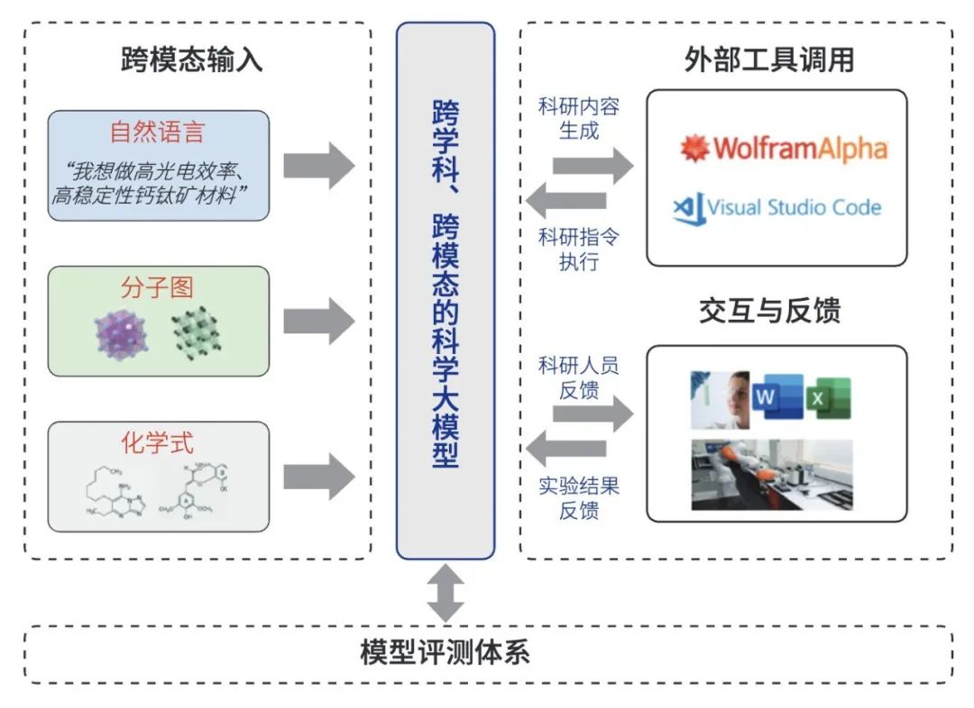 En tant qu'« assistant IA » pour aider les scientifiques humains à mener des recherches scientifiques, le grand modèle scientifique doit avoir une base de connaissances interdisciplinaires, être capable de traiter des entrées de données intermodales, maîtriser la capacité d'appeler des outils scientifiques externes et combiner rétroaction et évaluation pour parvenir à une évolution continue.
