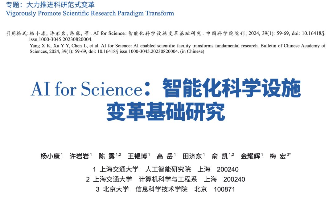 L'équipe AI4S De l'Université Jiao Tong De Shanghai a Proposé Le Concept d'« Installations Scientifiques Intelligentes » Pour Établir Un Assistant De Recherche Interdisciplinaire En IA.