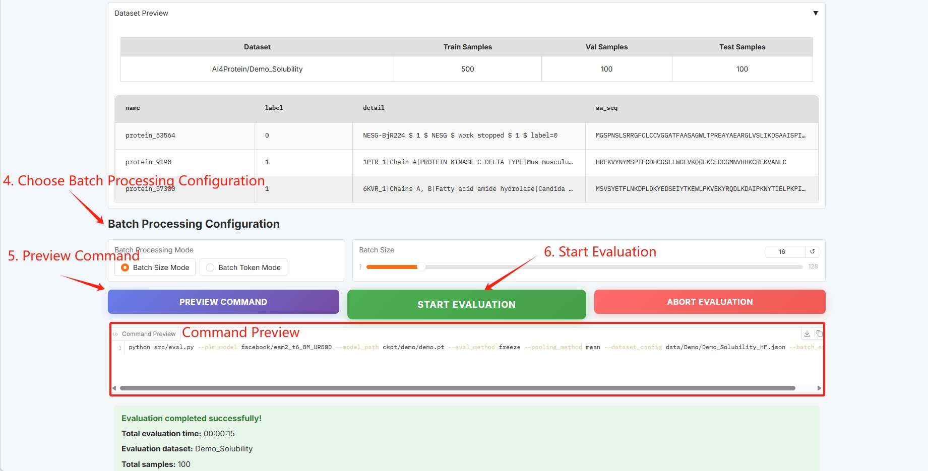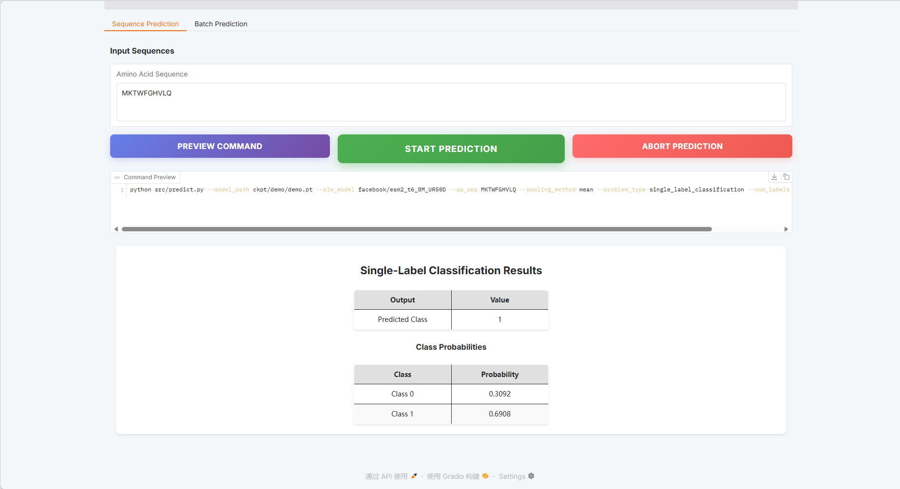 La plateforme prend en charge l'exécution en ligne de commande et une interface sans code basée sur Gradio, et intègre plus de 40 ensembles de données liés aux protéines et plus de 40 PLM populaires, ce qui la rend facile à utiliser pour les chercheurs en informatique et en biologie.