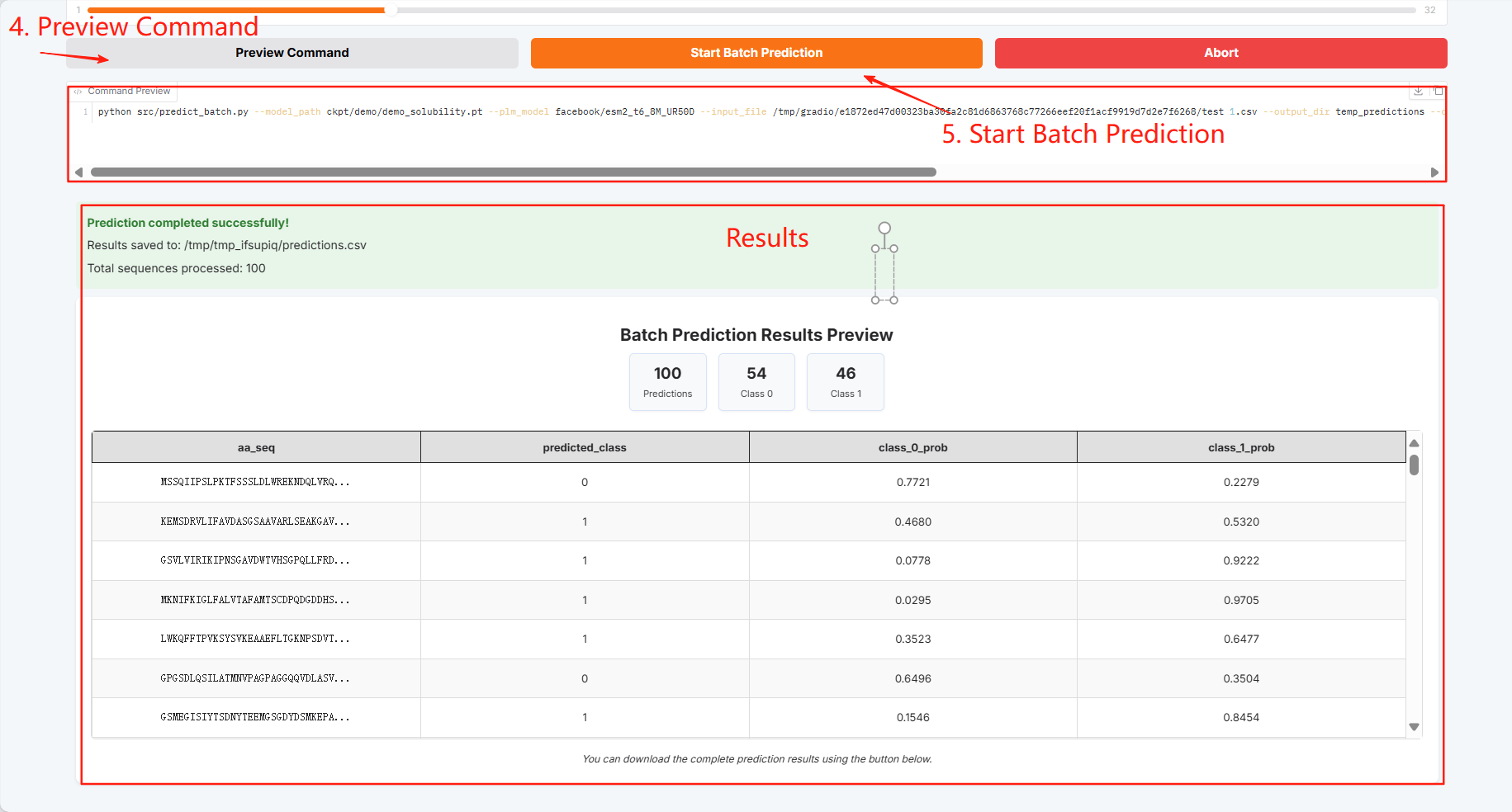 Cliquez sur le module « Prédiction » dans le module « Formation de modèles et de prédiction » pour effectuer une prédiction de séquence unique et une prédiction par lots.