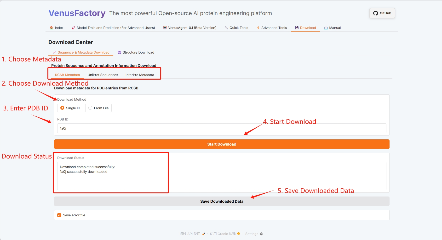 Cliquez sur le module Télécharger pour télécharger les données sur les protéines dans cette interface.