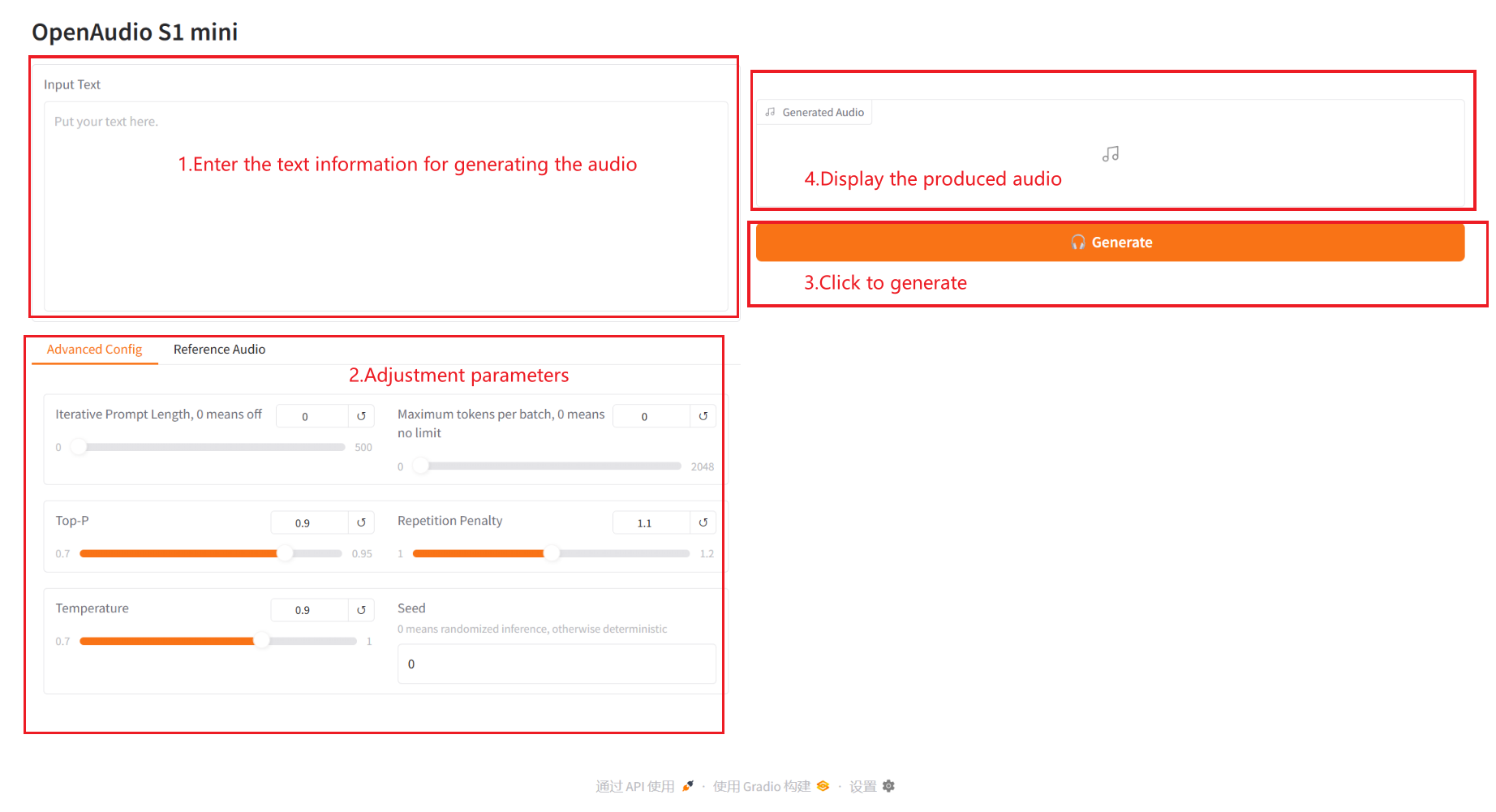 Si « Bad Gateway » s'affiche, cela signifie que le modèle est en cours d'initialisation. Étant donné que le modèle est grand, veuillez patienter environ 1 à 2 minutes et actualiser la page. Lorsque vous utilisez le navigateur Safari, l'audio peut ne pas être lu directement et doit être téléchargé avant la lecture.
