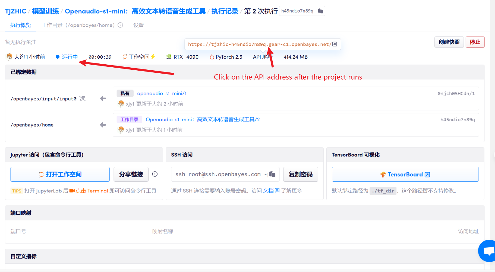1. Après avoir démarré le conteneur, cliquez sur l'adresse API pour accéder à l'interface Web