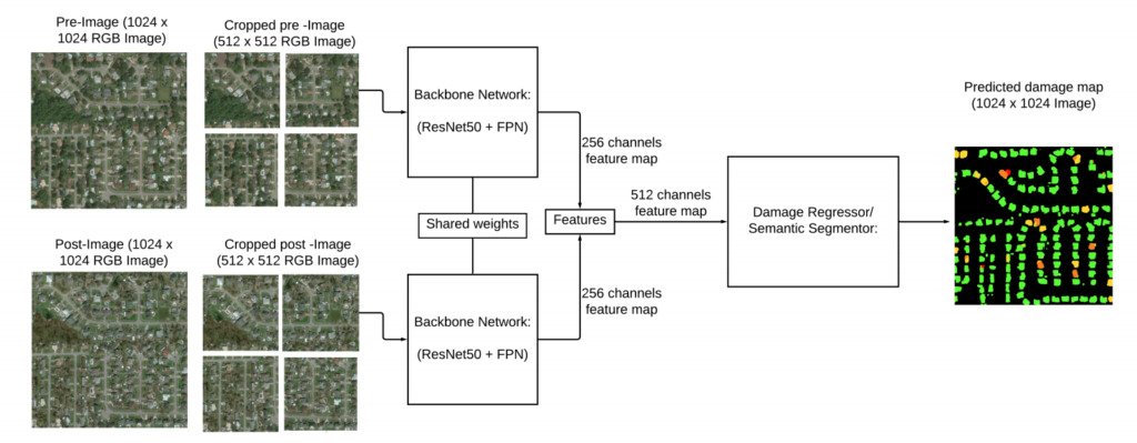 したがって、MIT工学修士課程の学生であるイーサン・ウェーバーと共同研究者のハッサン・カンは、最新の論文で次のように述べています。 「多時空間融合を活用した衛星画像による建物被害評価」深層学習モデルは以下で提案されています。被害地域の衛星画像により、より迅速かつ正確に評価できるため、初期対応者に多くの時間を与え、被害を最小限に抑えることができます。
