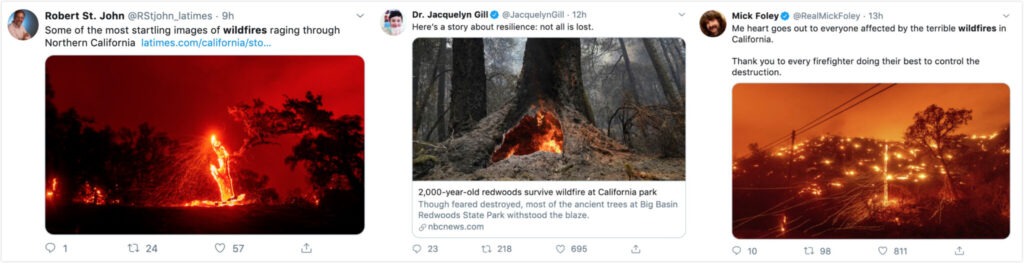 同氏はまた、ソーシャルメディアと衛星画像はどちらも緊急対応に役立つ可能性のあるデータの形式であると述べた。ソーシャルメディアは現場の観察を提供し、衛星画像は山火事の影響を最も受けている地域を特定するなど、幅広い洞察を提供します。