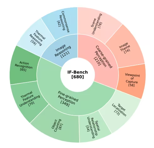 IF-Benchは、中国科学院自動化研究所と中国科学院大学人工知能学院が共同でリリースした、赤外線画像のマルチモーダル理解のための高品質ベンチマークです。赤外線画像に対するマルチモーダル大規模言語モデル(MLLM)の意味理解能力を体系的に評価することを目的としています。データセットには、499枚の赤外線画像と680組の視覚的質問応答(VQA)ペアが含まれています。画像は23の異なる赤外線画像データセットから取得されており、全体的に比較的バランスの取れた分布を維持しています。