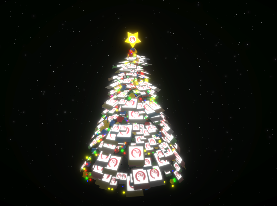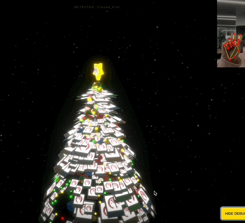 ✊ 握りこぶし(クローズドフィスト)で組み立てましょう。すべてのパーツが瞬時に組み合わさり、完璧なクリスマスツリーが完成します。