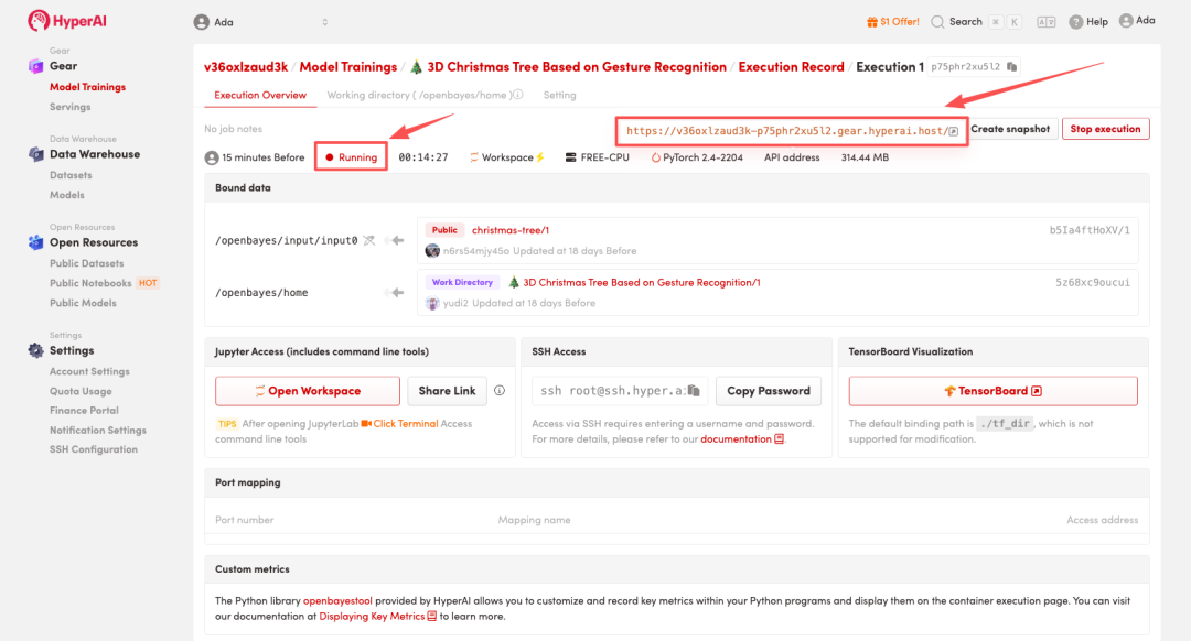 数千もの精巧なパーティクルエフェクト、まばゆい光のショー、そして吊り下げられた貴重なポラロイド写真が織りなす、豪華で鮮やかなバーチャルクリスマスツリー。現在、「ジェスチャー認識に基づく 3D クリスマス ツリー」チュートリアルが、HyperAI Web サイト (hyper.ai) で公開されました。この記事では、HyperAI の象徴的なロゴを例として使用しています。興味のある読者は、ワンクリック展開チュートリアルを使用して独自のクリスマスツリーをカスタマイズできます。