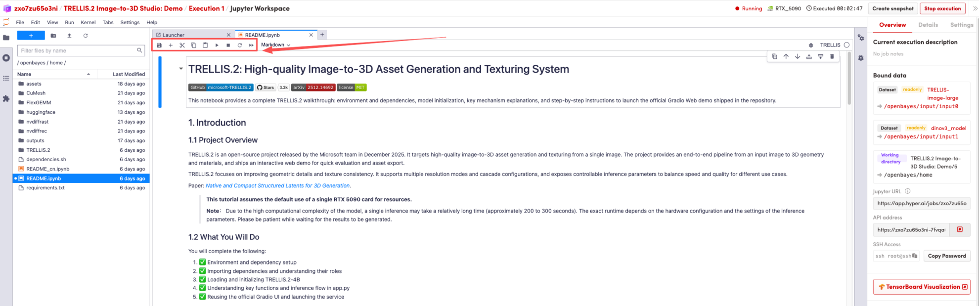 1. hyper.aiのホームページにアクセス後、「TRELLIS.2 3Dデモ生成」を選択するか、「チュートリアル」ページに移動して選択します。ページがリダイレクトされたら、「このチュートリアルをオンラインで実行」をクリックします。