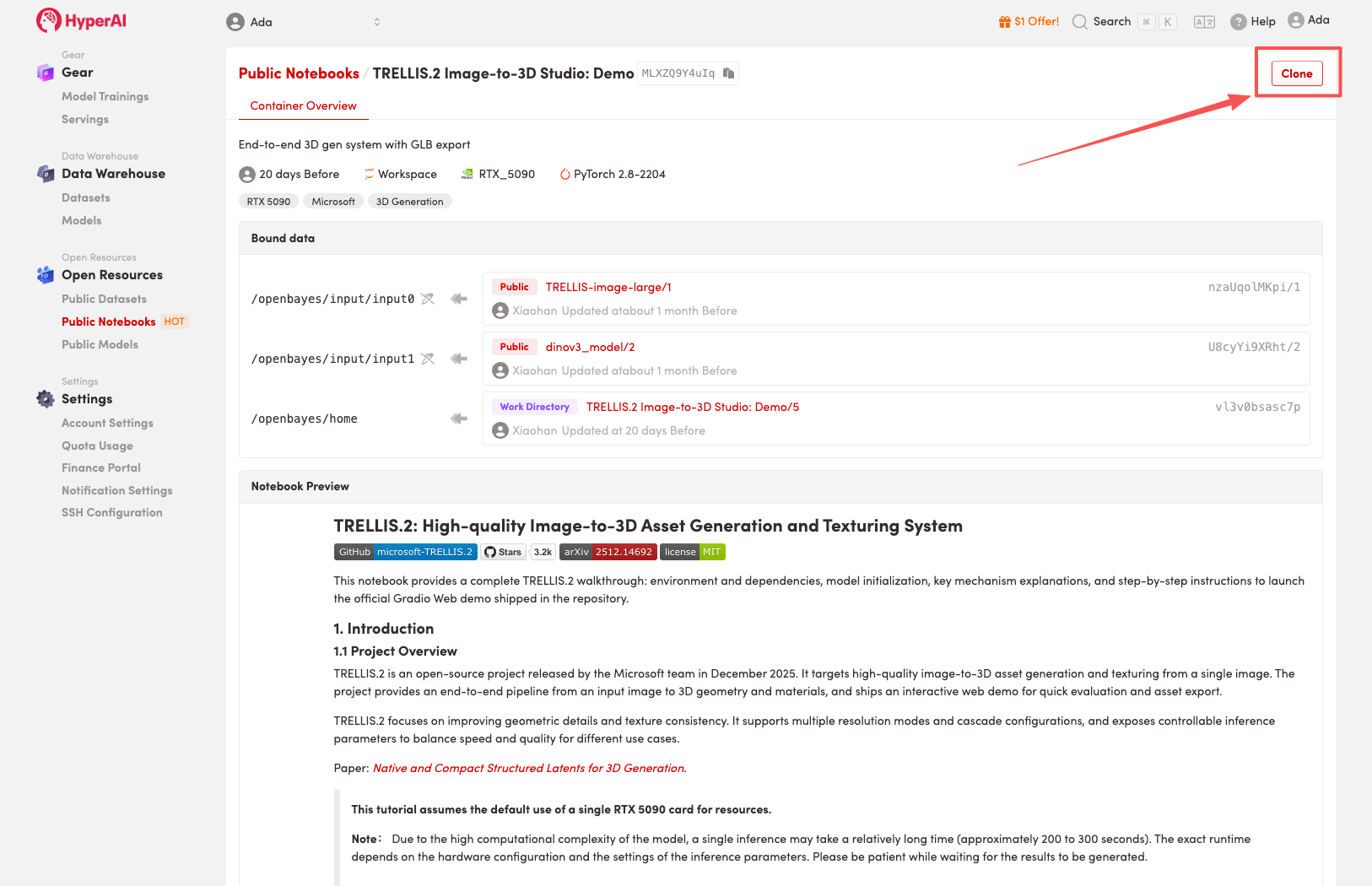 「TRELLIS.2 3D生成デモ」は、HyperAIウェブサイト(hyper.ai)の「チュートリアル」セクションで公開されています。効率的な3Dモデル生成をぜひご体験ください!