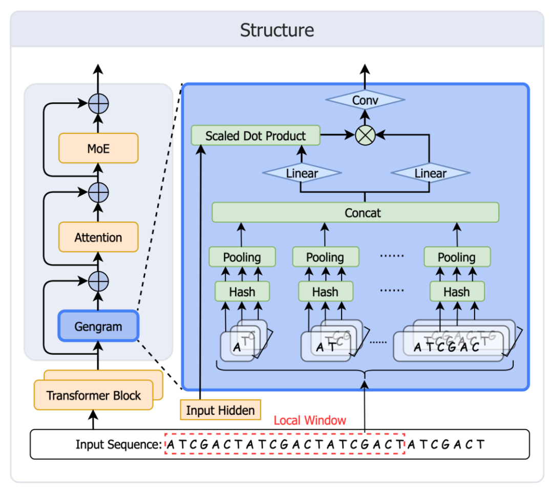 最近、BGI生命科学研究所と浙江智江研究所のメンバーで構成されるジェノスチームによって提案されたジェングラム(ゲノムエングラム)モデルは、これはこの問題に対する革新的な解決策を提供します。この設計により、生物学的ルールのハードコーディングを回避しながら、モデルにゲノムの「文法」を明示的に理解させることができます。