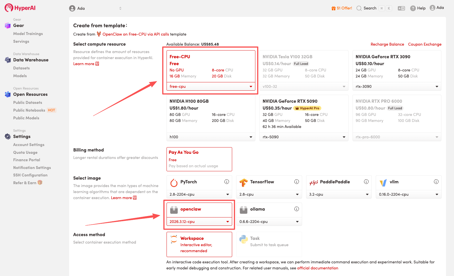 HyperAIは、世界中の開発者に無料のCPU割り当てを提供しています。ベーシックユーザーは1つのタスクを最大12時間連続実行できますが、プロユーザーは1つのタスクを最大24時間連続実行できます。