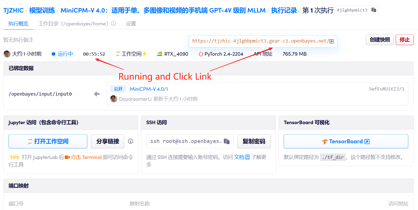 このチュートリアルでは、単一のRTX 4090グラフィックカードをコンピューティングリソースとして使用します。テスト用に、1枚または複数の画像を使ったチャット、動画を使ったチャット、そして少数のショットの3つの例が用意されています。