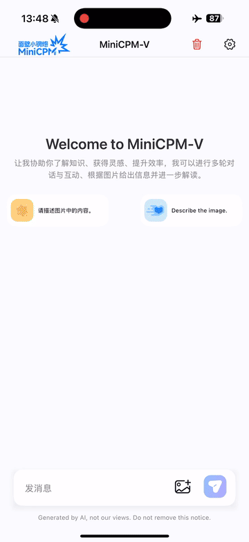iPhone 16 Pro MaxにMiniCPM-V 4.0を導入し、iOSデモデモ ビデオは、編集されていない生の画面録画です。