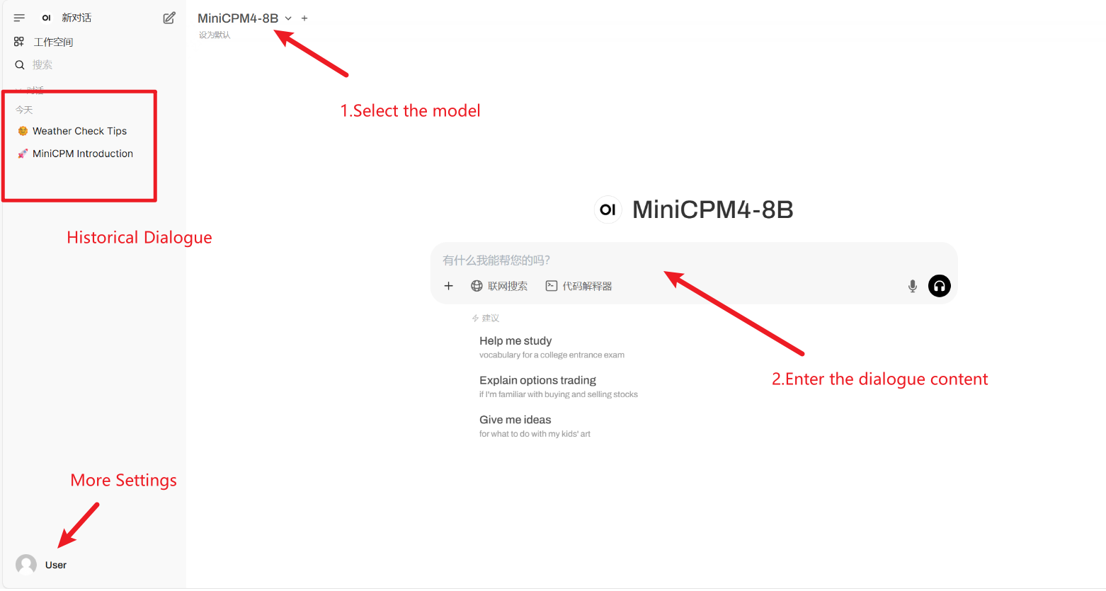 2. 웹페이지에 접속 후 모델과 대화를 시작할 수 있습니다.
