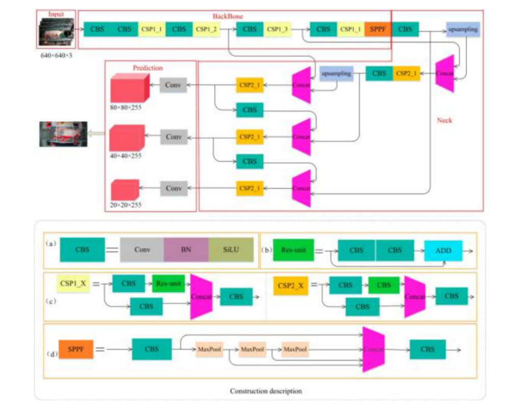 The experimental team used YOLOv5s-6.0 to build a model to detect sow posture and piglets.This model consists of 4 parts: