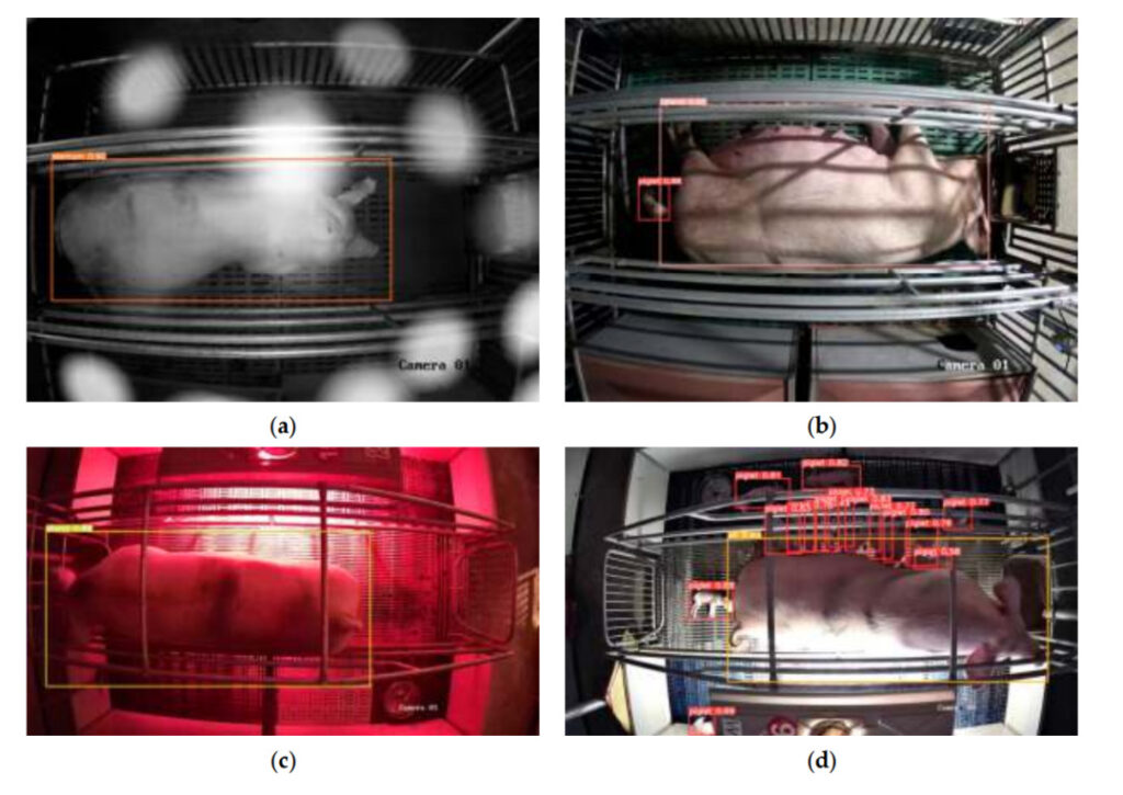 Next, the data was preprocessed. The experimental team first selected videos recorded one day before and after sow farrowing, and then processed them into image data using Python and OpenCV.The labeling software was used to manually annotate and enhance the data of sow posture and newborn piglets in the 12,450 images acquired., and 32,541 images are obtained to form the dataset.