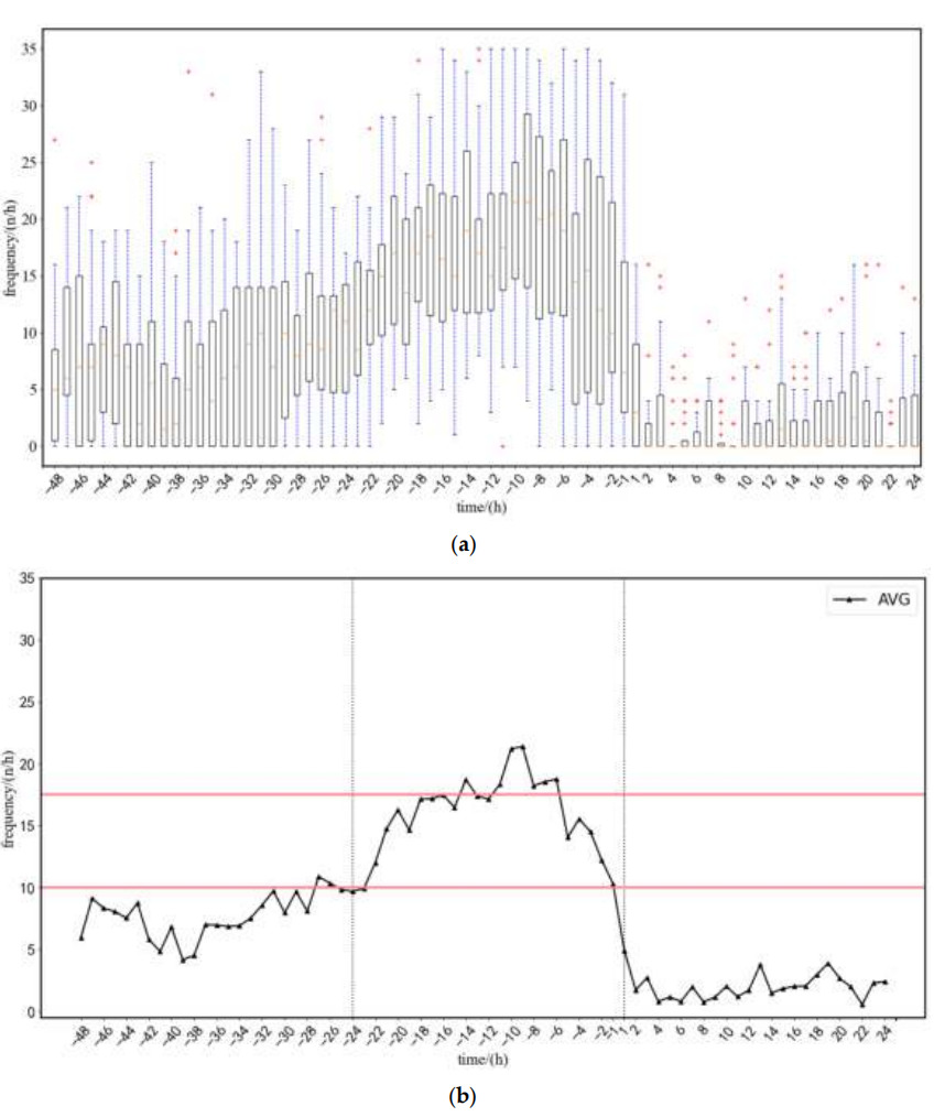 The experimental team tested and analyzed the data of 22 sows.The average frequency of posture changes in sows from 48 hours before farrowing to 24 hours after farrowing was obtained.Based on the frequency of changes (as shown in the figure below), the team summarized the model's early warning strategy as follows: