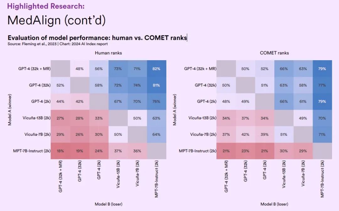 在 MedAlign 数据集上,研究人员对 6 个来自不同通用领域的大型语言模型进行了测试,并通过临床医生评估了每个大模型生成的响应的准确性和质量。