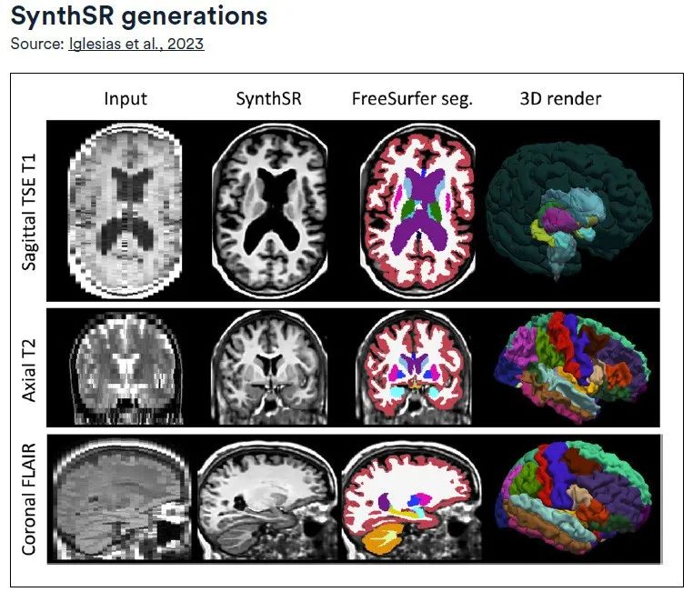 SynthSR 的先进之处在于,其能够将临床上不同方向、不同分辨率和不同对比度的 MRI 扫描数据,转换为 1mm 各向同性的 MPRAGE 图像,并在此过程中对病灶进行修复。