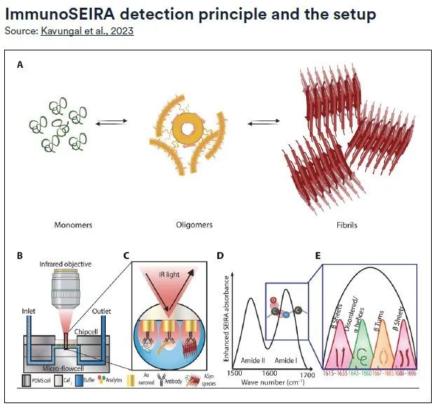 针对这一难题,瑞士洛桑联邦理工学院的研究团队开发了一种创新的诊断方法,结合神经网络技术、表面增强红外吸收 (SEIRA) 光谱的等离子体红外传感器,以及免疫测定技术 (ImmunoSEIRA),实现了对神经退行性疾病阶段和进展的量化分析。