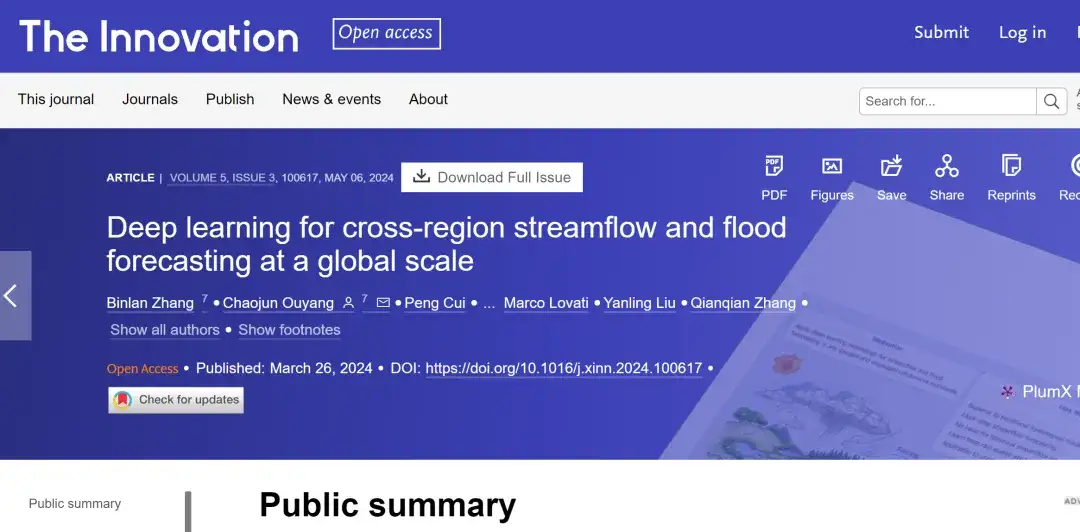 In April 2024, Ouyang Chaojun's team from the Chengdu Institute of Mountain Hazards and Environment, Chinese Academy of Sciences, published a paper titled "Deep learning for cross-region streamflow and flood forecasting at a global scale" in The Innovation.An AI-based runoff flood prediction model ED-DLSTM is proposed. By encoding the static properties of the watershed and meteorological drivers, the model is trained using data from more than 2,000 hydrological stations around the world, attempting to solve the runoff prediction problem in watersheds with and without monitored data worldwide.