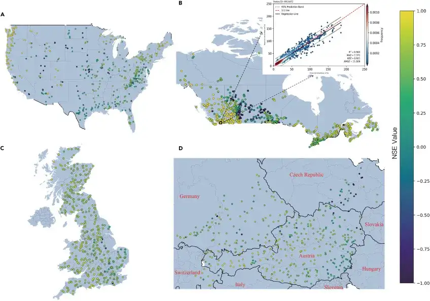 - For the first time, multiple hydrological AI models were trained and compared worldwide